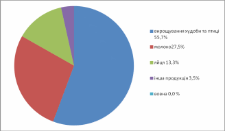 Рис. 2.2. Структура виробництва продукції тваринництва в Україні у 2011 році