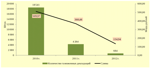 - •Динамика нарушений валютного законодательства Российской Федерации с использованием поддельных (подложных) таможенных деклараций в количественном и стоимостном выражении в 2010 – 2012 годах