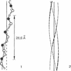 1 — единичная пол и пептидная цепь; 2 — трехцепочечная молекула; 3 — фибрилла коллагена