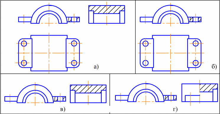 Правильный выбор изображений при выполнении рабочего чертежа данной детали сделан в случае…