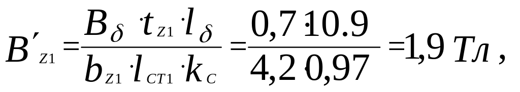 расчетная индукция в зубцах /2, с. 387, (9.105)/