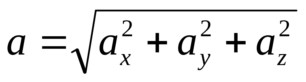 т.е. проекция ускорения точки на координатные оси равны первым производным от проекций скорости или вторым производным от соответствующих координат точки по времени. Модуль и направление ускорения найдутся из формул