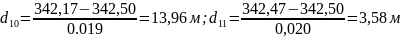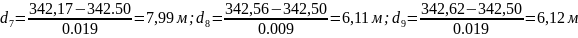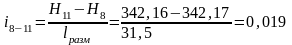 Для вычисления отметок точек 8 и 9 предварительно необходимо определить уклон лотка (7-11):