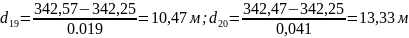 Далее вычисляют расстояния d1 и d2 по осям лотков въезда: