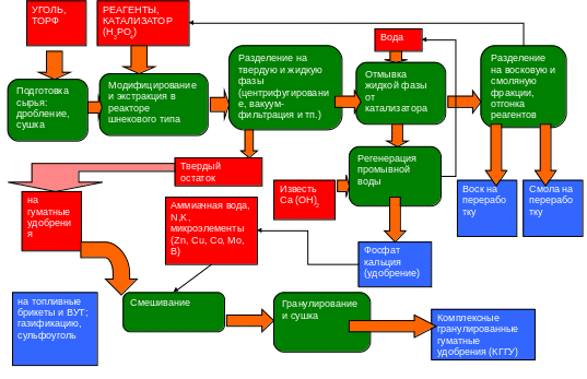 БЛОК-СХЕМА ТЕХНОЛОГИИ ПОЛУЧЕНИЯ ВОСКОВ, СМОЛ, ГУМИНОВЫХ ПРЕПАРАТОВ ИЗ БУРОГО УГЛЯ И ТОРФА