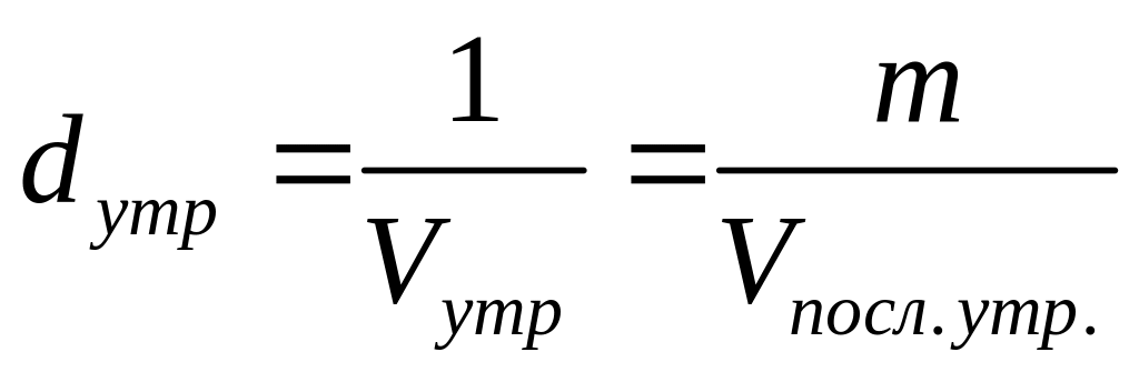 Величина, обратная объему утряски, называется плотностью утряски d и определяется по формуле