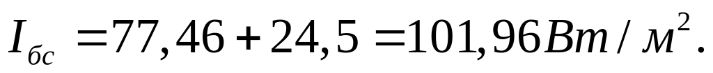 Повна інтенсивність сонячної радіації на даху вагона обчислюється по формулі: