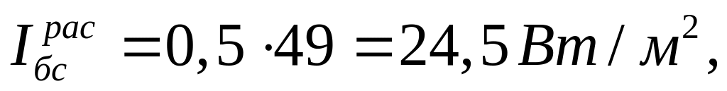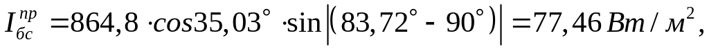 Інтенсивність сонячної радіації на бічній стіні вагону обчислюється по формулі: