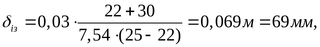 λіз = 0,03 Вт/(м К) – коефіцієнт теплопровідності теплової ізоляції;