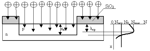 Так как ионный пучок перпендикулярен к пластине, размеры легированной области точно соответствуют размерам окна в оксидной маске.