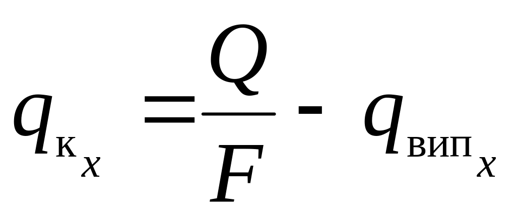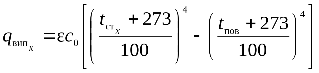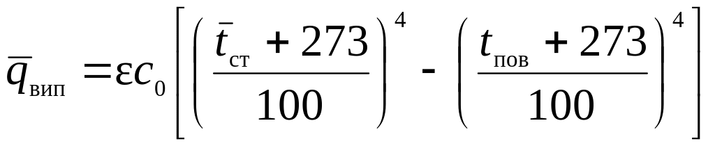 3. Розраховується середня густина результуючого теплового потоку випромінюванням між поверхнею калориметра і оточуючими тілами за формулою, Вт/м2,