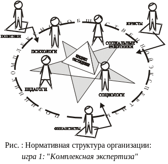 В этом разделе мы знакомим читателей с опытом разработки и проведения игр как форм практики организации межпрофессионального взаимодействия. Кроме того, игры использовались нами как практика исследований коммуникации методом квалификационного анализа. Мы считаем, что разработанная нами технология организационных игр становиться наиболее эффективной формой реализации современных методов исследования, социального проектирования и управленческой практики. Основное внимание мы уделим описанию опыта проведения "позиционно-ролевой" игры. За 20 лет практики использования игровых методов (А.Тюков)39 нам ни разу не удавалось организовать именно такое взаимодействие: позиционно-ролевое без синкретического смешения, путаницы и театра "комедии положений" по модели трансактных ролевых игр Э.Берна.