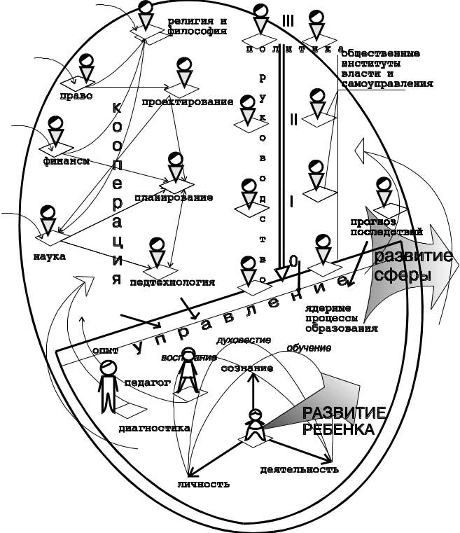 СФЕРА ДЕЯТЕЛЬНОСТИ - Общественная, профессиональная социотехническая система деятельности (искусственно-естественная система). Отношение управляющей системы деятельности к управляемой. Сфера деятельности - это относительно независимая по критериям функционирования и развития социотехническая система в целом социума. Границами социума являются национально-государственные объединания.