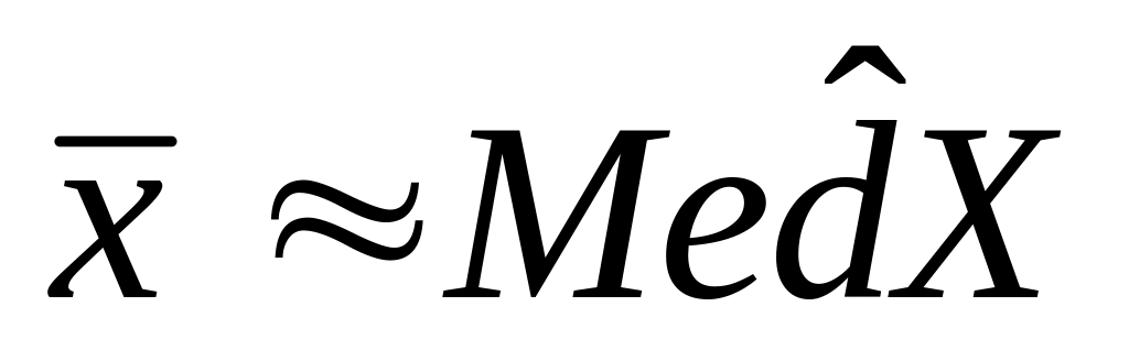 Рассчитаем оценки положения центра данных: оценку математического ожидания, оценку медианы (выборочную медиану) – по следующим формулам: