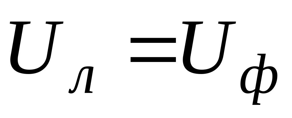 При з'єднанні трикутником та симетричному навантаженні фаз: