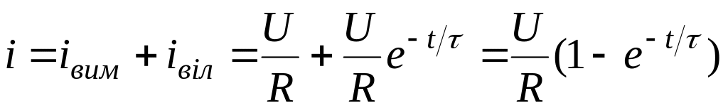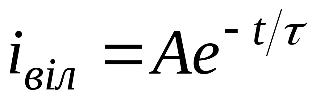 Перехідний струм можна подати як суму двох складових (рис. 4.2): вимушеного струму івим, який встановлюється після закінчення перехідного процесу, і вільного івіл, що діє під час перехідного процесу, викликаного енергією магнітного поля, що накопичена в котушці індуктивності: