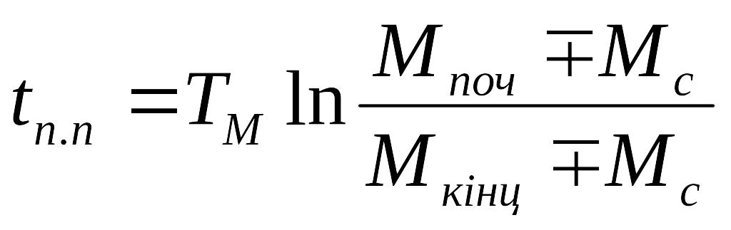 Тривалість перехідного процесу на пусковій чи гальмовій механічній характеристиці визначається за формулою: