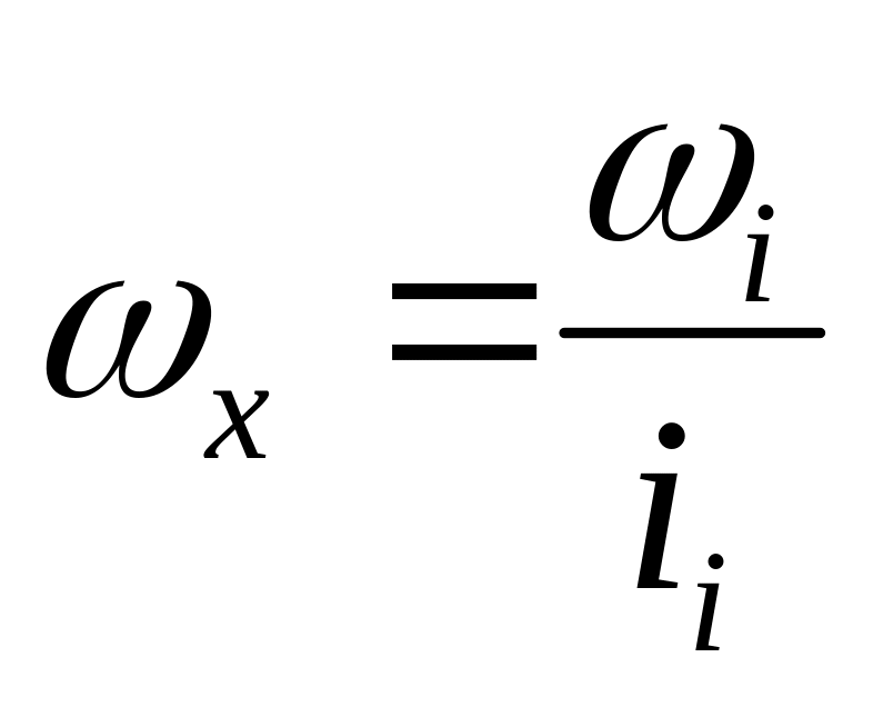 Заметим, что состояние ПКП на оси ординат соответствует стоповому режиму ПКП или, что тоже самое, режиму трогания машины с места (ωx=0) при работающем двигателе (ωд=1). Для удобства дальнейшей работы с планом скоростей ПКП, используя подобие треугольников на плане скоростей, вычислим значения ординат или абсолютных угловых скоростей основных звеньев на передаче заднего хода. Из рисунка 4.10 видно, что именно на этой передаче относительные угловые скорости основных звеньев или разности ординат максимальны.