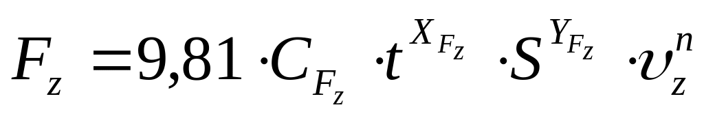 XFz , YFz, n – показатели степени, зависящие от свойств обрабатываемого