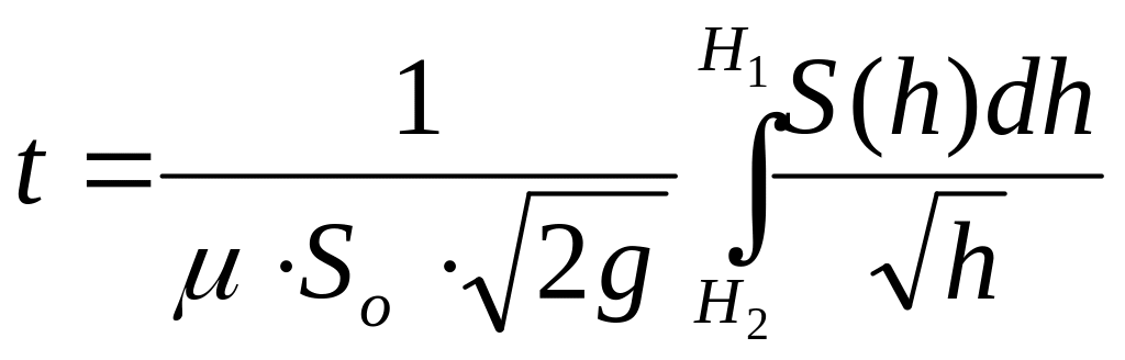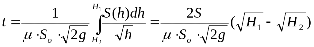 Из (8.8) можно определить время изменения уровня от Н1 до Н2