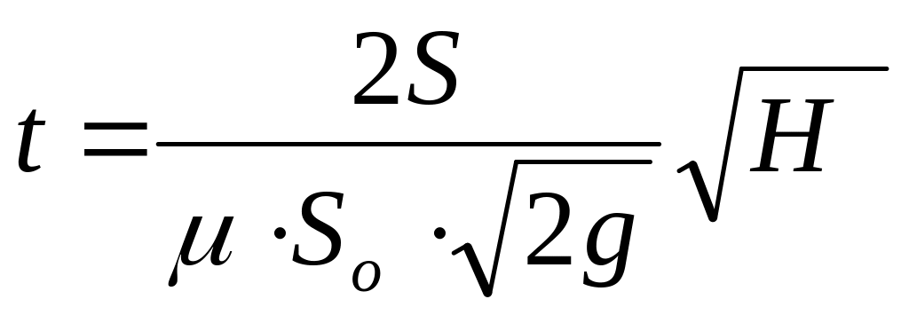 Если скорость изменения уровня мала, то возможность применить уравнение Бернулли для установившегося движения и использовать зависимость для расхода Q при истечении, полученную выше.