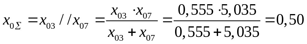 В аварийном режиме рассматривается 2 вида КЗ: трехфазное и двухфазное на землю. В месте аварии вводится шунт с сопротивлением x. Для трехфазного режима x=0, для двухфазного на землю x=x2//x0.