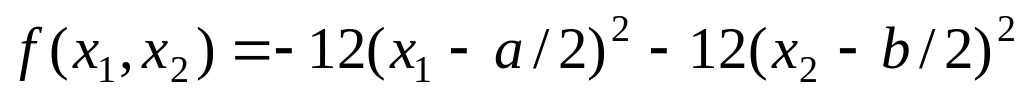 y=-12*(x1-0.5*a)^2-12*(x2-0.5*b)^2;