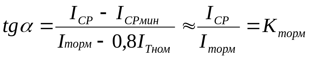 tgα – тангенс угла наклона к оси абцисс, касательной, проведенной из начала координат к характеристике срабатывания реле, соответствует минимальному торможению (нижняя характеристика).