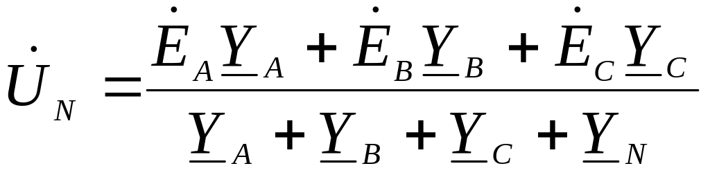 Тут YA = 1/ ZA , YB = 1/ZB , YC = 1/ZC , YN = 1/ZN – комплексні значення провідностей віток, якщо не враховувати опори фаз генератора і проводів.