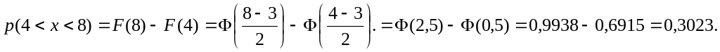 Найдем вероятность попадания нормально распределенной случайной величины на заданный интервал: