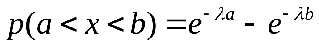 Теперь можно найти вероятность попадания показательно распределенной случайной величины в интервал :