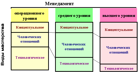 Исследования, проведенные Р. Кацем, показывают, что каждому уровню менеджеров соответствует та или иная степень каждого из указанных видов мастерства.