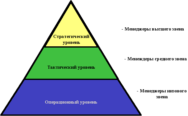 В зависимости от принадлежности к тому или иному уровню управления, обычно выделяют 3 типа менеджеров: