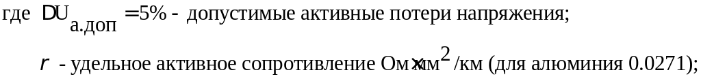 P – активная передаваемая мощность, кВт;