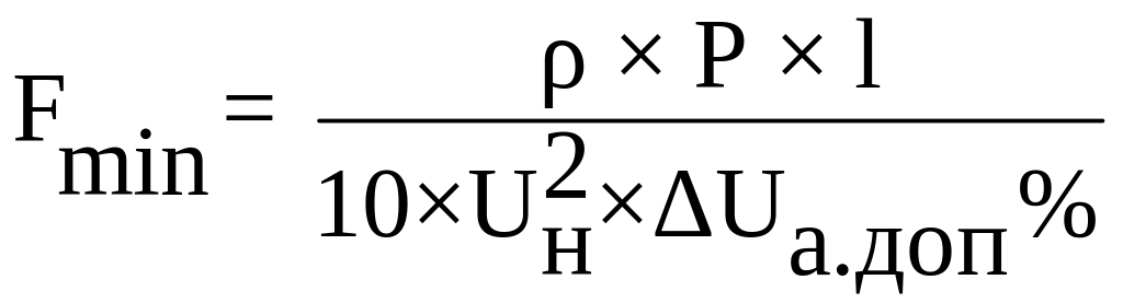 Для двух лучевых схем проверка по допустимым потерям напряжения проводится вычислением сечения на минимум потерь металла: