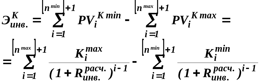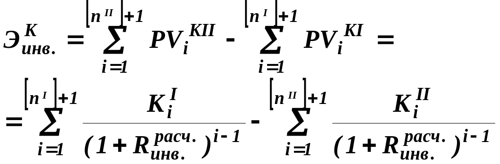 Если продолжительность строительства комплекса объектов по обоим вариантам одинакова nI=nII, формула (13) принимает следующий вид: