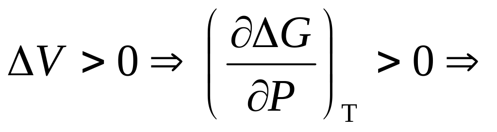 Другое свойство изобарно-изотермического потенциала позволяет оценить влияние давления на смещение равновесия или самопроизвольность процесса: