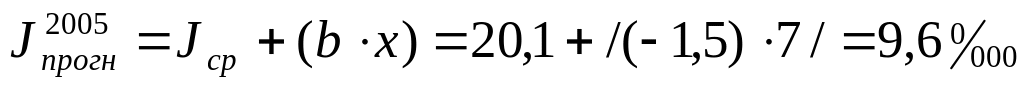 Теоретический уровень заболеваемости будущего года легко определяется продолжением расчетов по таблице №2. необходимо проставить значение «х» для 2005 года и провести расчет Jтеор по формуле: