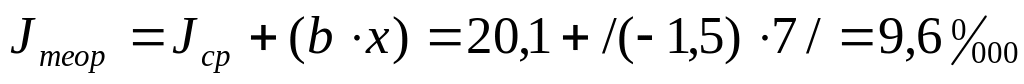 Имея значения Jср и b по формуле Jтеор= Jср+ (b х) находим значение теоретических уровней заболеваемости для каждого года. Например, Jтеор для 1992г равно: