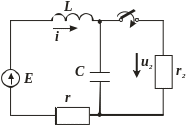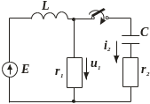 В колі паралельно конденсатору ємністю С=200 мкФ підключається резистор з опором r2=5Ом. Визначити струм і та напругу и2 на резисторі при Е=100 В; r=3 Ом; L=0,1 Гн.