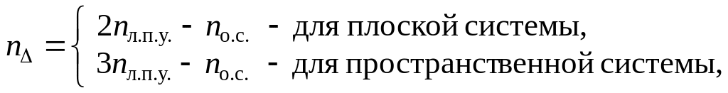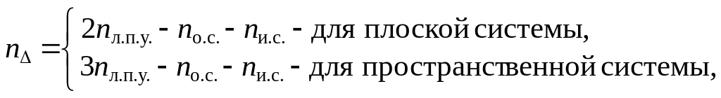 Суммарное число независимых угловых и линейных перемещений расчётных узлов называется степенью кинематической неопределимости деформируемой системы:
