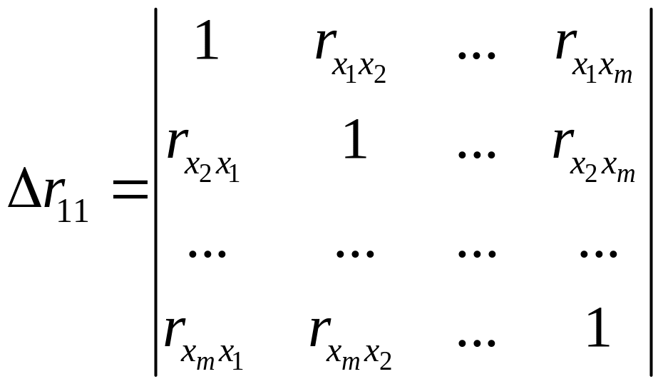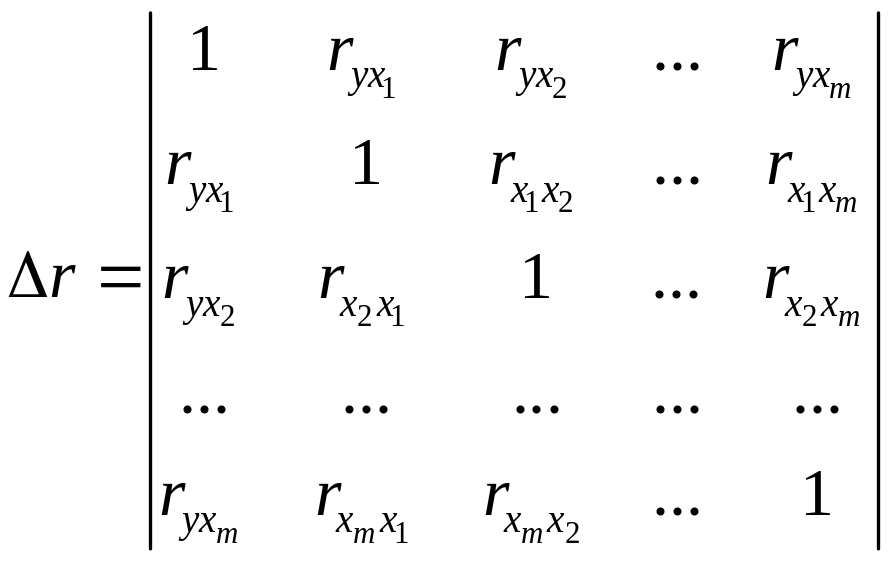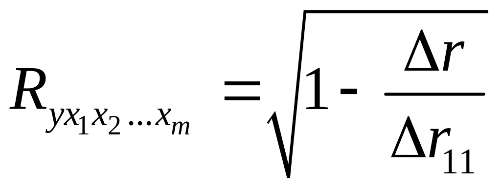При линейной зависимости коэффициент множественной корреляции можно определить через матрицу парных коэффициентов корреляции: