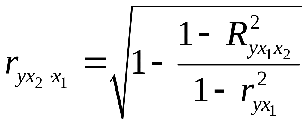 При двух факторах формулы для расчета частных коэффициентов корреляции примут вид: