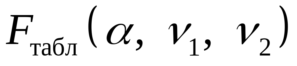 Вычисленный критерий Fфакт сравнивается с критическим значением Fкрит, найденным по двум степеням свободы: ν1 = m, ν2 = n – m – 1, уровню значимости .
