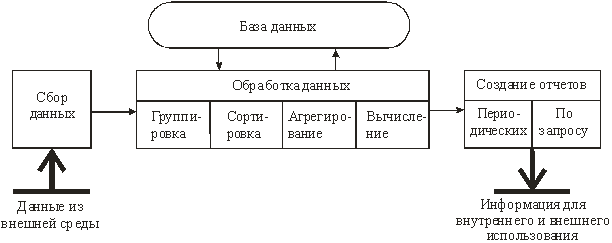 Сбор данных. По мере того как фирма производит продукцию или услуги, каждое ее действие сопровождается соответствующими записями данных. Обычно действия фирмы, затрагивающие внешнее окружение, выделяются особо как операции, производимые фирмой.