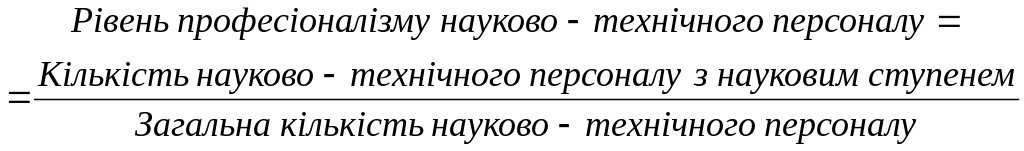 - рівень професіоналізму науково-технічного персоналу. Даний показник показує можливість підприємства здійснювати НДДКР у зв’язку із освітнім та науковим складом його науково-технічних працівників: