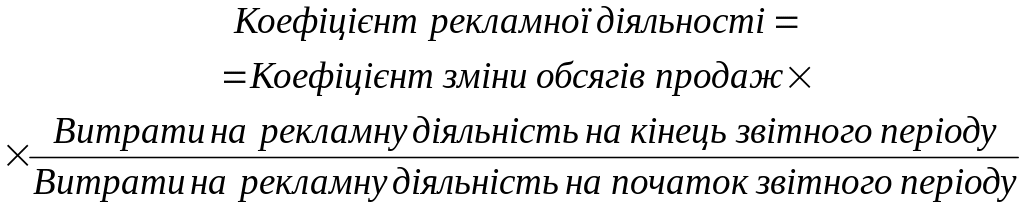 4) конкурентоспроможність за критерієм просування продукції визначається за допомогою коефіцієнта рекламної діяльності: