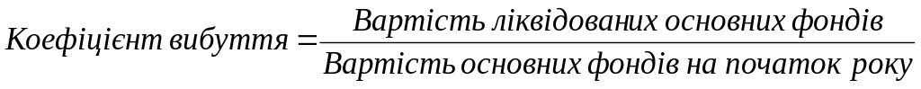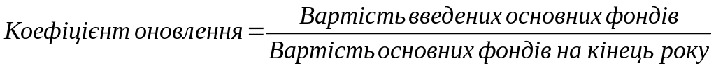 - співвідношення коефіцієнтів вибуття і оновлення основних фондів. Коефіцієнт оновлення визначається за формулою: