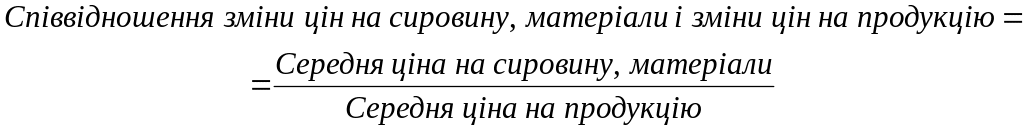 - співвідношення зміни цін на сировину, матеріали і зміни цін на продукцію дорівнює: