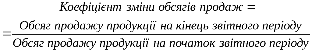 - коефіцієнт зміни обсягів продаж, який відображає ріст або зниження конкурентоспроможності підприємства за рахунок зміни обсягів продаж: